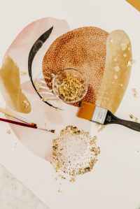 gilding powder and art tools placed on picture
